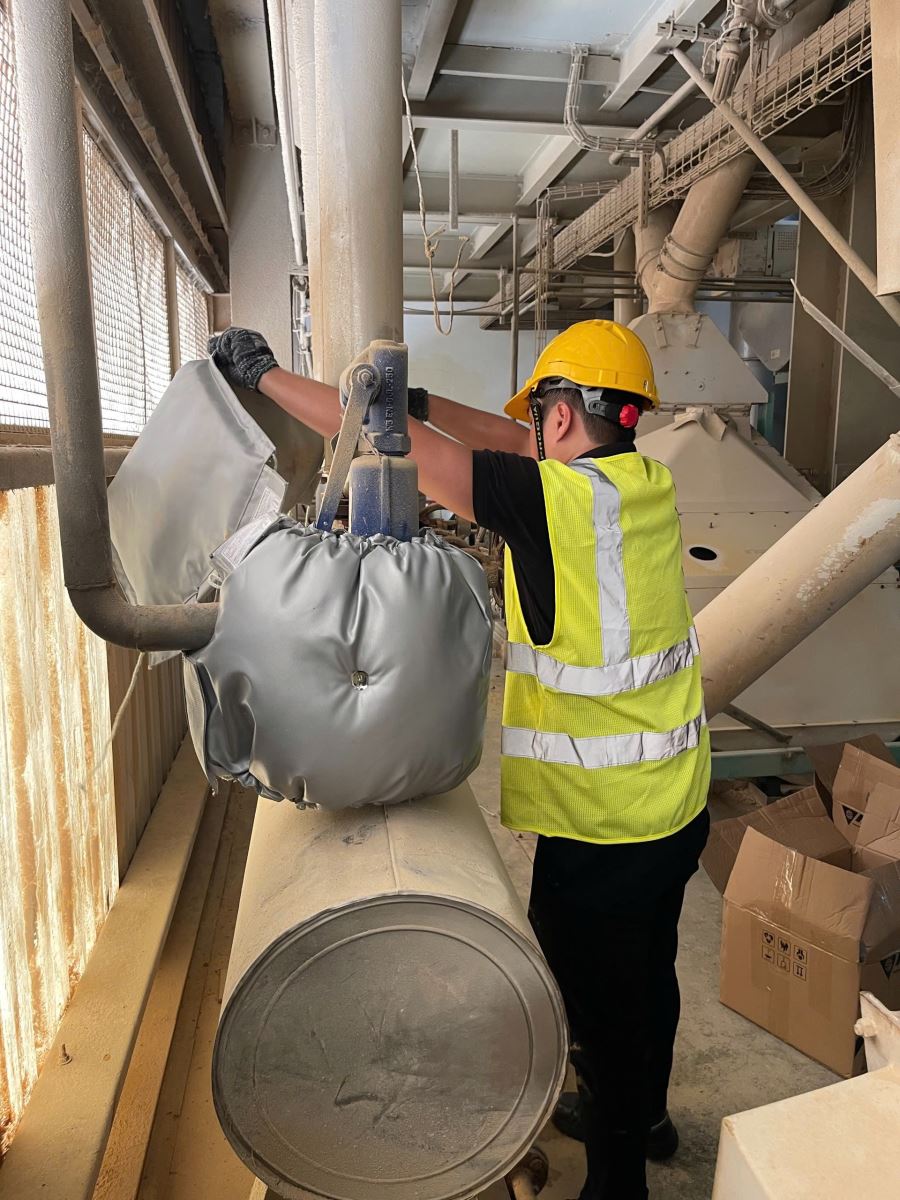 Bắt đầu từ điểm cố định, quấn túi bảo ôn đều xung quanh thiết bị, đảm bảo không có khoảng trống.