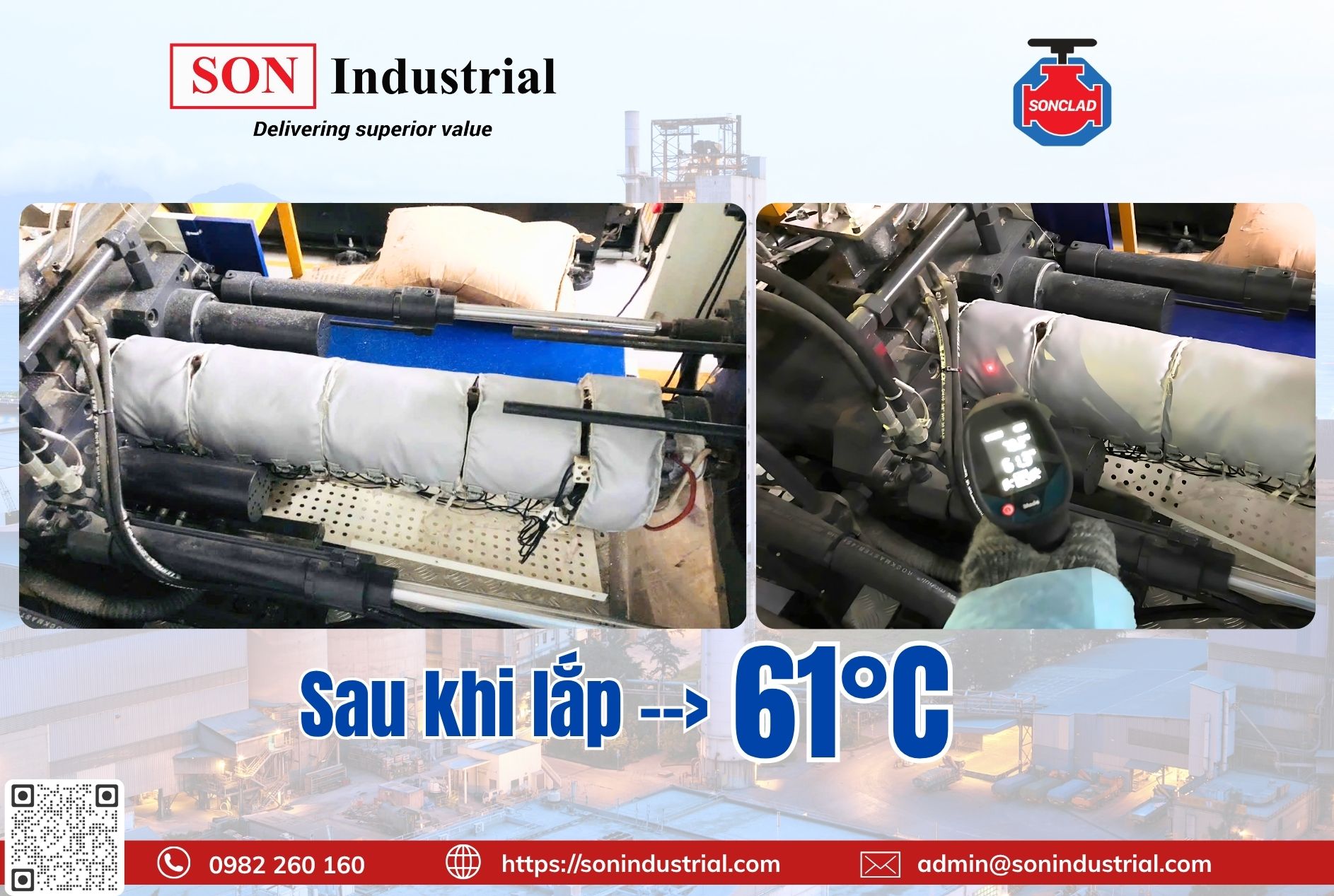 Qua đo lường thực tế, mỗi máy ép nhựa sau khi lắp túi bảo ôn có thể tiết kiệm khoảng 24 kWh điện/ngày, tương đương gần 48.000đ chi phí điện.